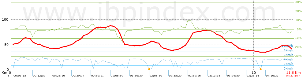 Velocidad media total: 2.6 Km/h |
