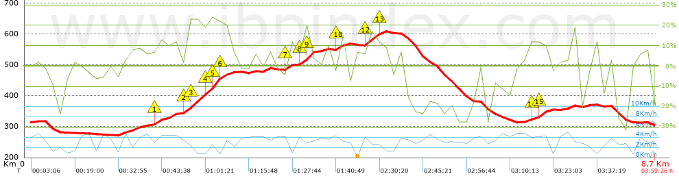 Desnivel positivo por Km: 53.46 m | |