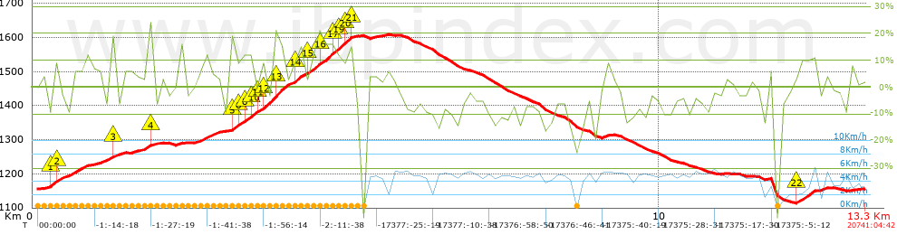 | Desnivel negativo por Km: 46.01 m | |