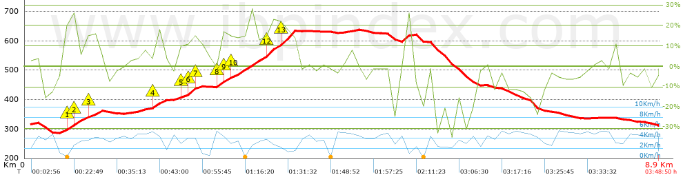 | Desnivel negativo por Km: 47.44 m | |