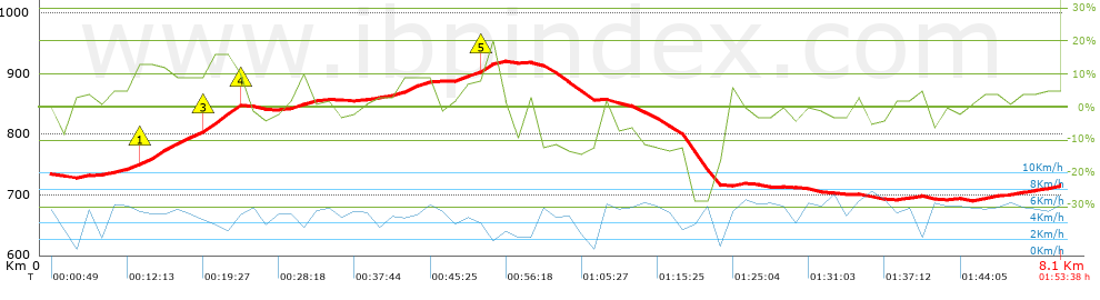 | Velocidad máxima sostenida: 7.67 Km/h |