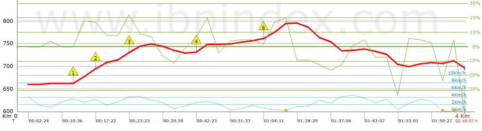 | Velocidad media total: 1.63 Km/h |