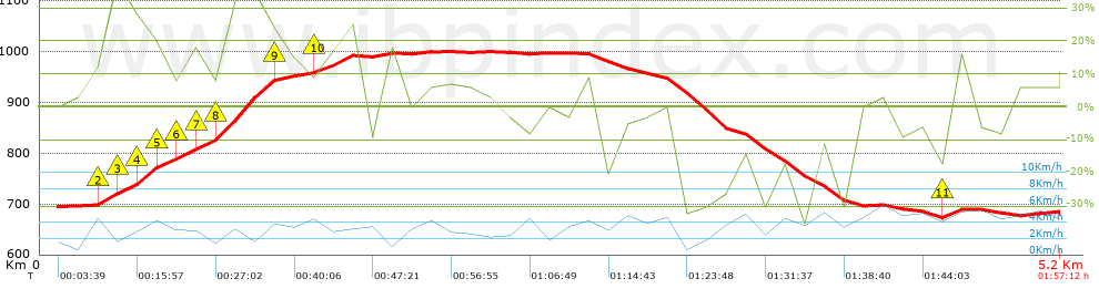 | Cambios de pendiente penalizables por Km: 0.766 |