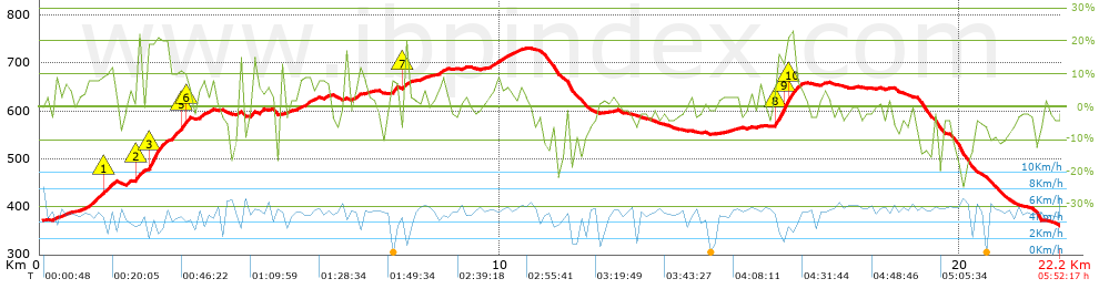 | Cambios de pendiente penalizables por Km: 0.225 |