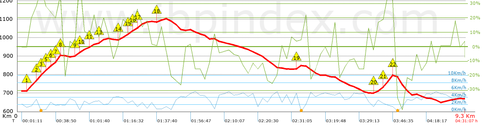 | Velocidad media total: 2.06 Km/h |