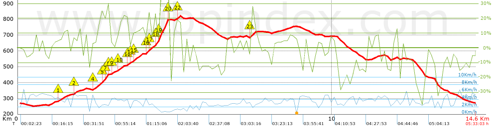 | Desnivel negativo por Km: 57.23 m | |