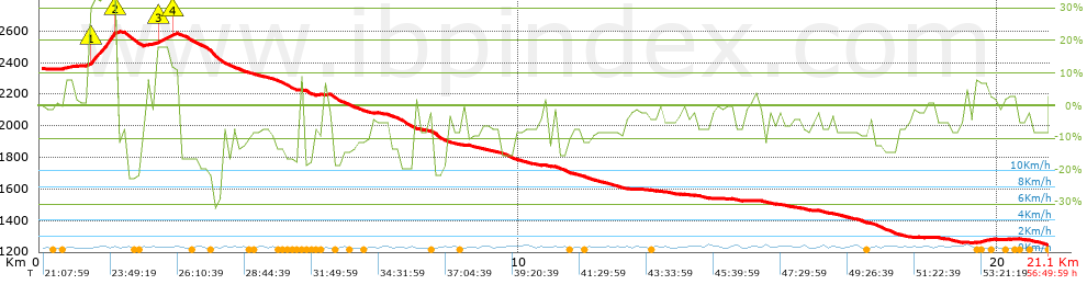 | Desnivel negativo por Km: 71.35 m | |