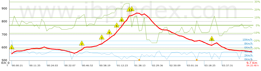 Velocidad media total: 2.2 Km/h |