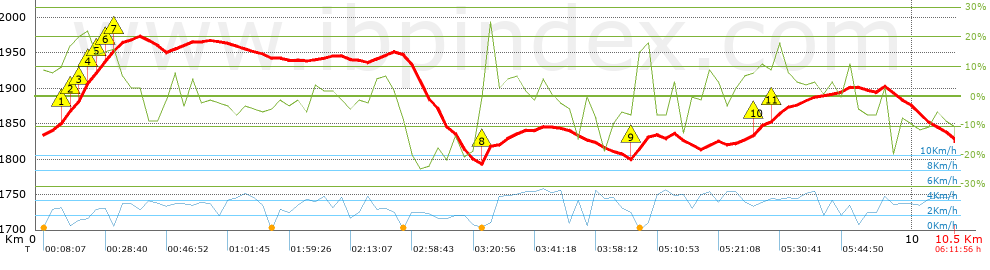 | Cambios de pendiente penalizables por Km: 0.381 |