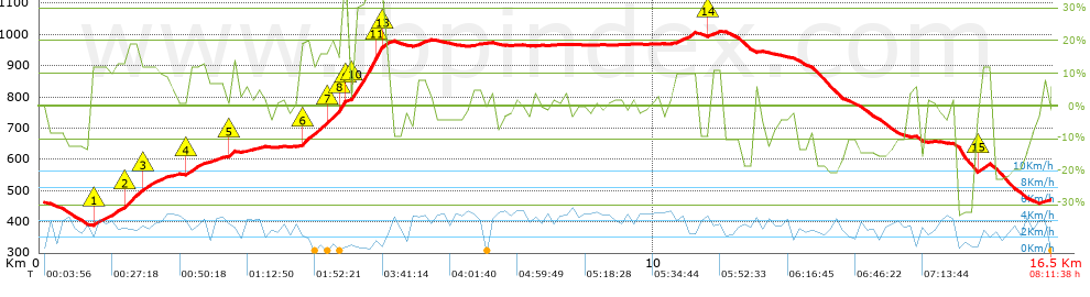 | Vitesse moyenne totale: 2 Km/h |
