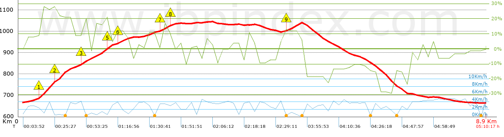 | Vitesse moyenne totale: 1.68 Km/h |