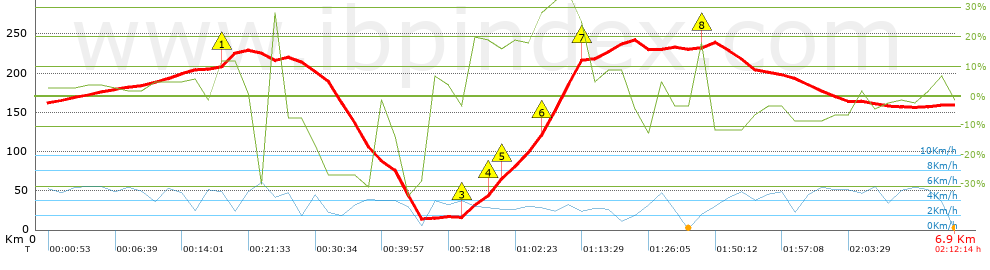 | Vitesse moyenne totale: 3.07 Km/h |
