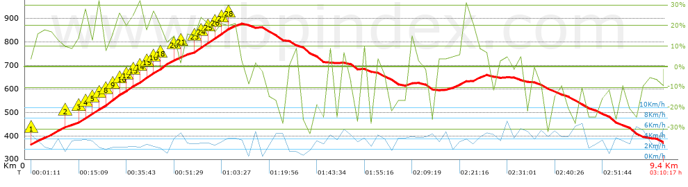 | Vitesse moyenne totale: 2.97 Km/h |