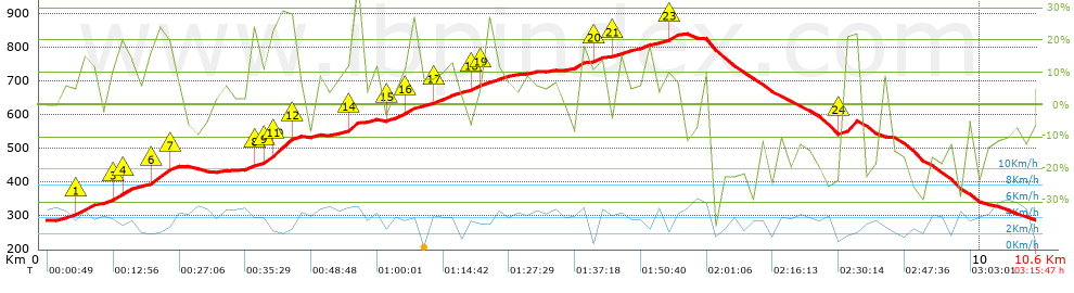 | Vitesse moyenne totale: 3.25 Km/h |