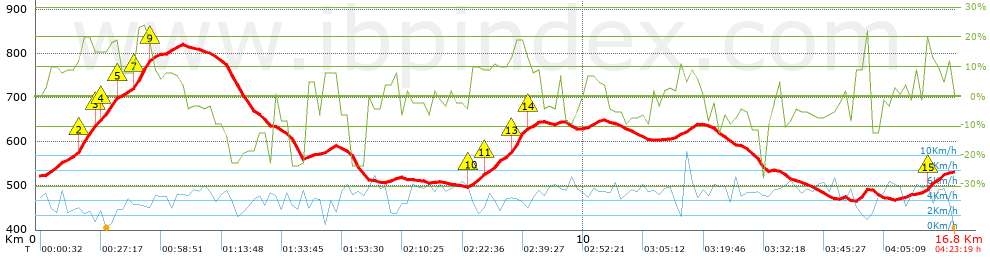 | Vitesse moyenne totale: 3.8 Km/h |