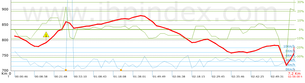 | Vitesse moyenne totale: 2.43 Km/h |