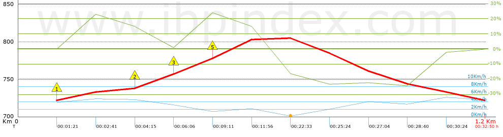 | Vitesse moyenne totale: 2.26 Km/h |