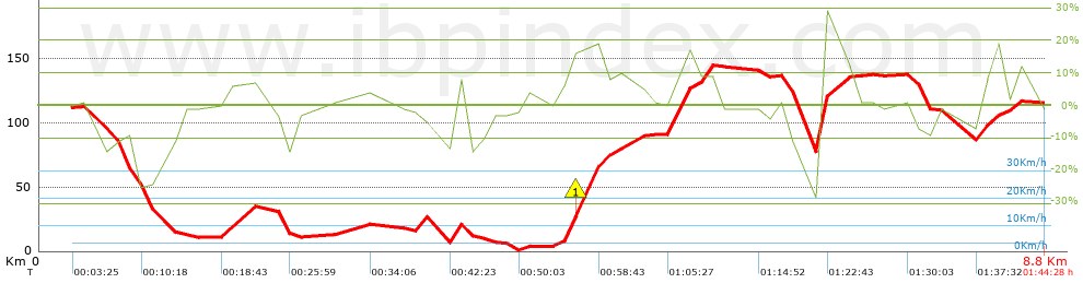 Pénalité due aux conditions du trajet: 54 %   ( > 50 % = MTB, < 50 % = RDB)