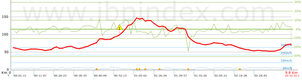 Pénalité due aux conditions du trajet: 53 %   ( > 50 % = MTB, < 50 % = RDB)