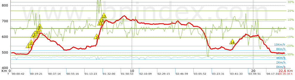 | Vitesse moyenne totale: 4.91 Km/h |